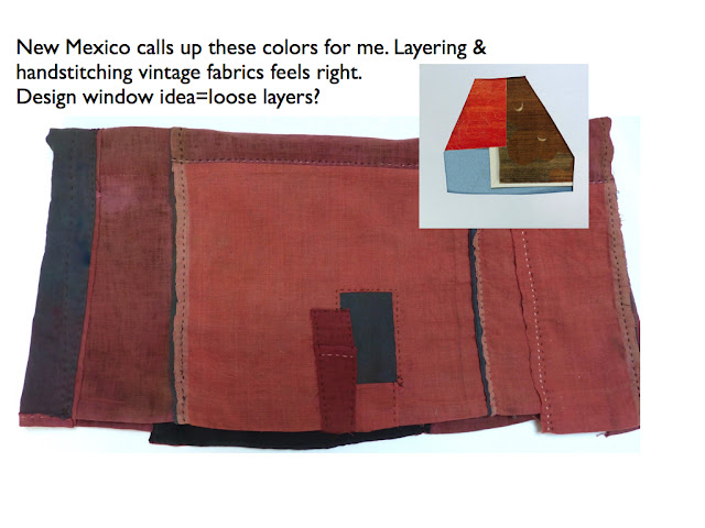 3. Make Fabric First: This always gives a vibrant, fresh look to a garment. In this combination of blues below...the simple torn edge in the design window reminds me how much I like irregular hem edges...so I am repeating that in this blue Taos skirt piece.