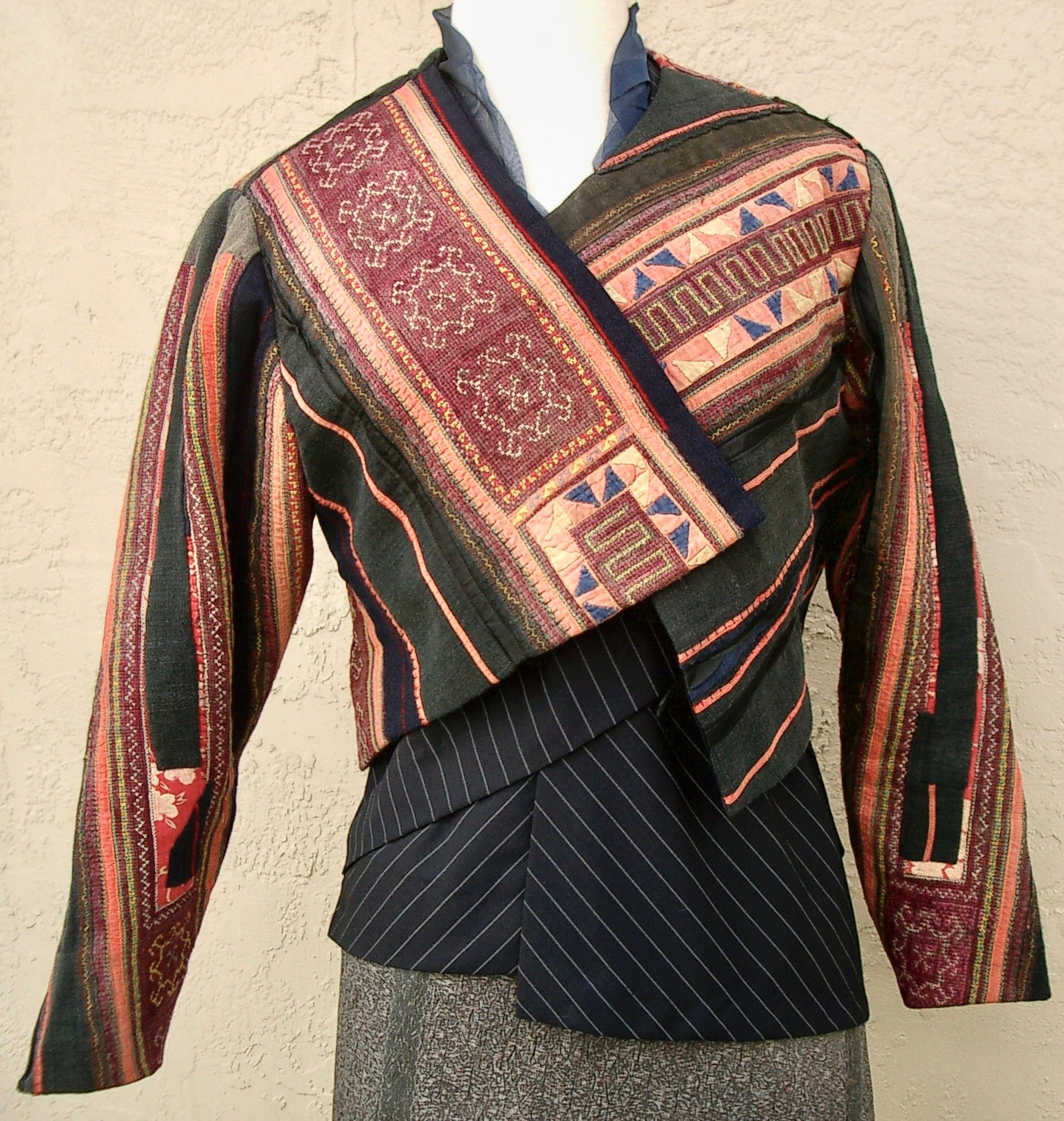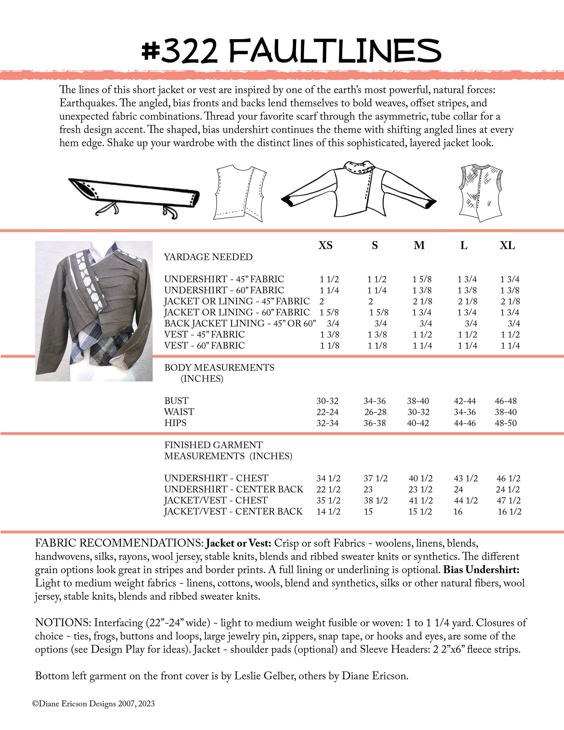 The lines of this short Jacket or vest are inspired by one of the earth's most powerful, natural forces: Earthquakes. The angled, bias fronts and backs lend themselves to bold weaves, offset stripes and unexpected fabric combinations. Thread your favorite scarf through the asymmetric, tube collar for a fresh design accent. The shaped, bias Undershirt continues the theme with shifting angled lines at every hem edge. Shake up your wardrobe with the distinct lines of this sophisticated, layered jacket look.